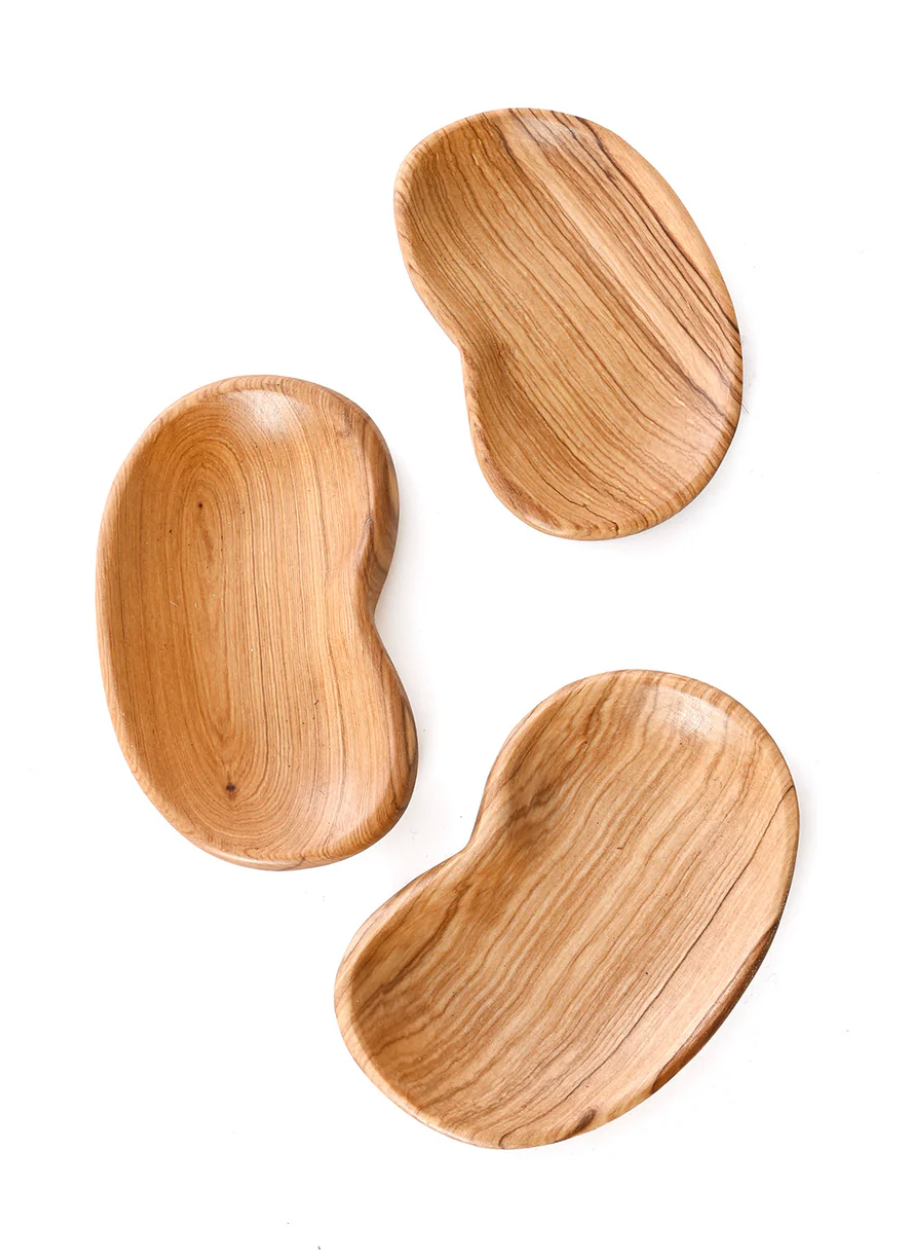 Kenyan wood carvers craft this small, this kidney bean shaped bowl reminds us of the groovy Art Deco movement. You'll find many uses for this tiny dish, from trinkets to nuts or jewelry.